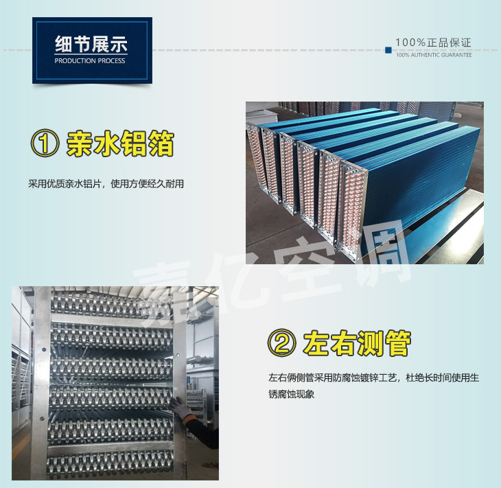 1: 表冷器匯管材料可以是鍍鋅鋼管,也可以是銅管或是不銹鋼管,表冷器翅片可以是普通鋁箔,也可是親水鋁箔;表冷器端護板可以是鍍鋅板也可以是不銹鋼板。