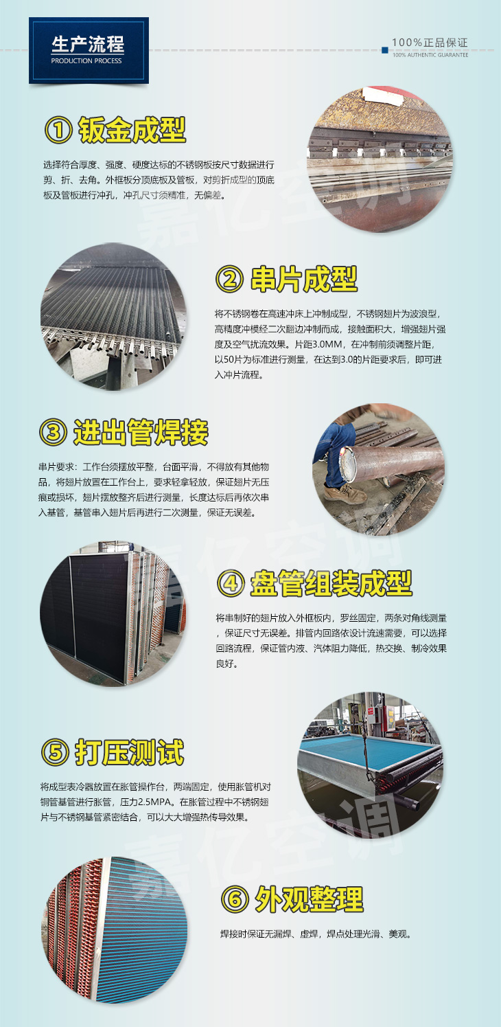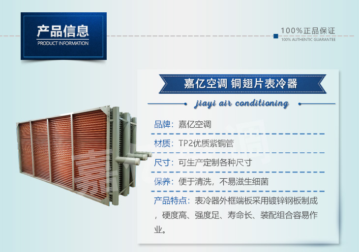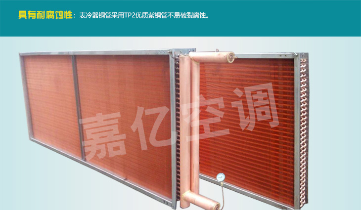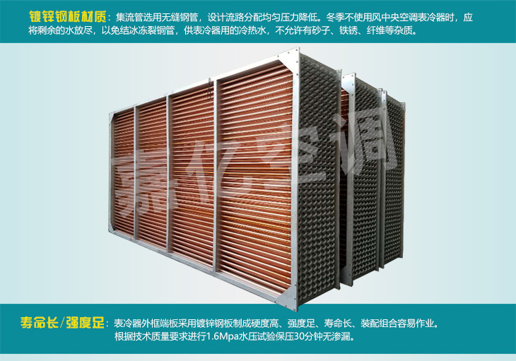 1: 表冷器匯管材料可以是鍍鋅鋼管,也可以是銅管或是不銹鋼管,表冷器翅片可以是普通鋁箔,也可是親水鋁箔;表冷器端護(hù)板可以是鍍鋅板也可以是不銹鋼板。