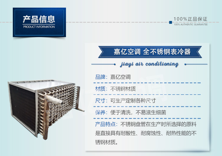 1: 表冷器匯管材料可以是鍍鋅鋼管,也可以是銅管或是不銹鋼管,表冷器翅片可以是普通鋁箔,也可是親水鋁箔;表冷器端護(hù)板可以是鍍鋅板也可以是不銹鋼板。